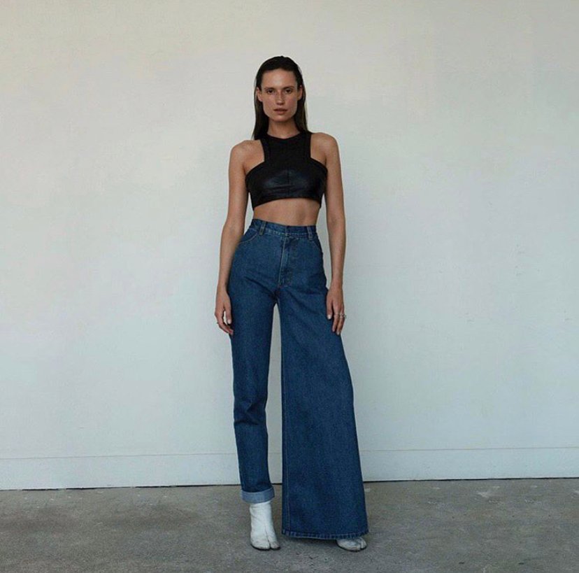 О дениме KSENIASCHNAIDER все начали говорить, когда Ксюша выпустила джинсы Demi Denims. Дизайнер совместила силуэт скинь с кюлотами и получила совершенно уникальную модель. Demi Denims принесли марке настоящую популярность: Vogue делали разбор новых коллекций, байеры запрашивали сотрудничество и даже массмаркет Mango сделал джинсы с похожим дизайном (а как мы знаем, подражание — явный признак успеха).