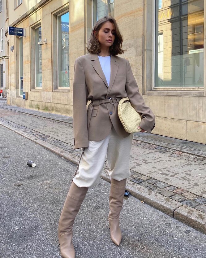 Если ты все-таки решила надеть платье, то, пожалуйста, забудь про мюли и лодочки. Они будут выглядеть неуместно. Лучше всего выбрать высокие сапоги. В идеале остановиться на кожаных моделях. Кстати, носить их можно не только с платьями, но и с брюками.
