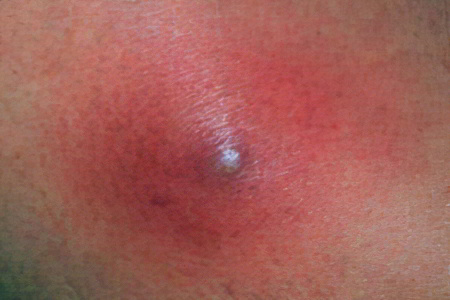 Признаками первой стадии чирия являются появление возвышающегося, твердого инфильтрата и значительное покраснение, которые сопровождаются ощущениями боли. В процессе воспаления образовывается узел. Спустя некоторое время место поражения уплотняется, и границы его расширяются, поражая здоровый эпителий. Ощущение боли усиливается, наблюдается отек окружающих тканей, воспалительный процесс нарастает.