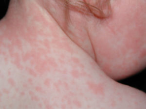 Симптоматика выражается в возникновении розоватых пятнышек на коже – единичных либо множественных, в сопровождении зуда. Доктора определяют высыпания как детскую розеолу либо экзантему.