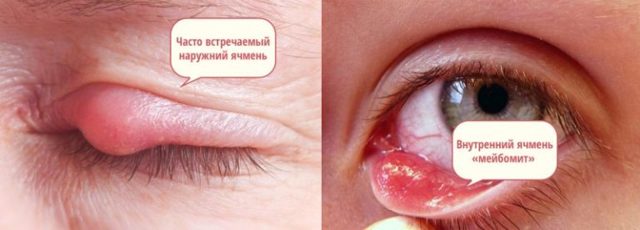 Недуг может быть наружным и внутренним. В первом случае ближе к краю века образуется желтый гнойник, прикосновение к которому сопровождается болью или теплом.
