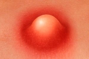 - Красная припухлость увеличивается в размерах, но не появляется гнойная головка – это признак того, что началось гнойное расплавление более глубоких тканей и образовался абсцедирующий фурункул.