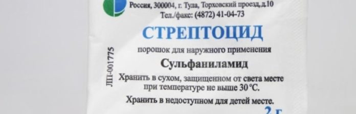 - Стрептоцид в лекарственной форме порошка;